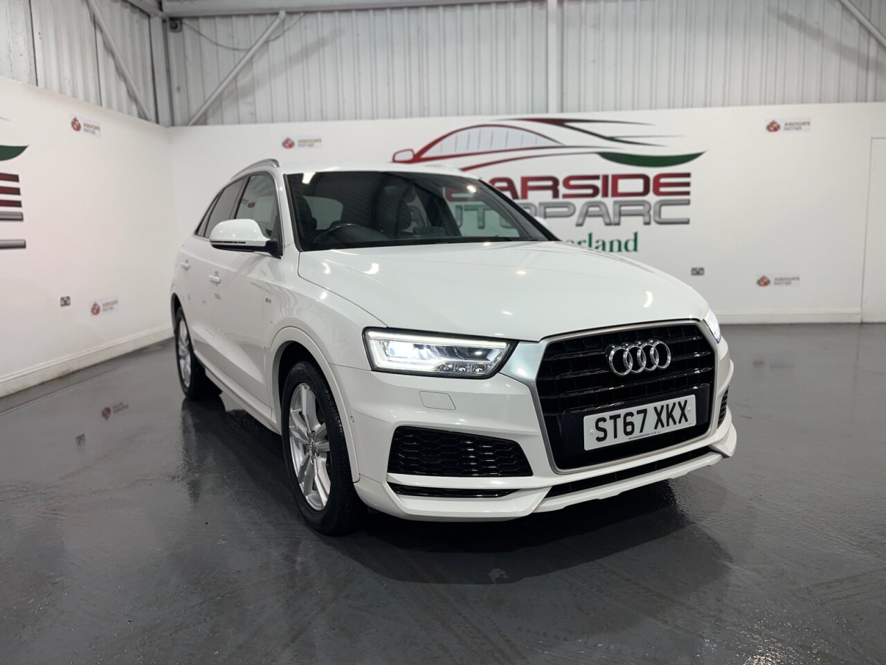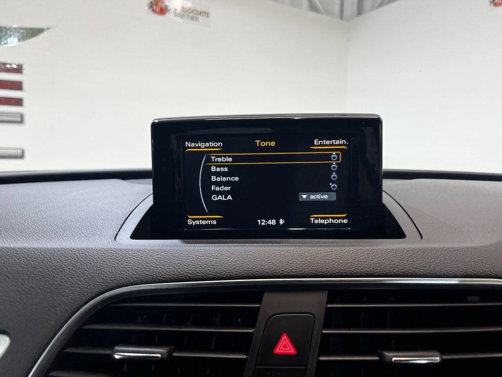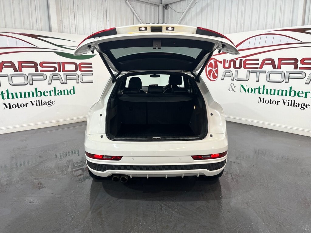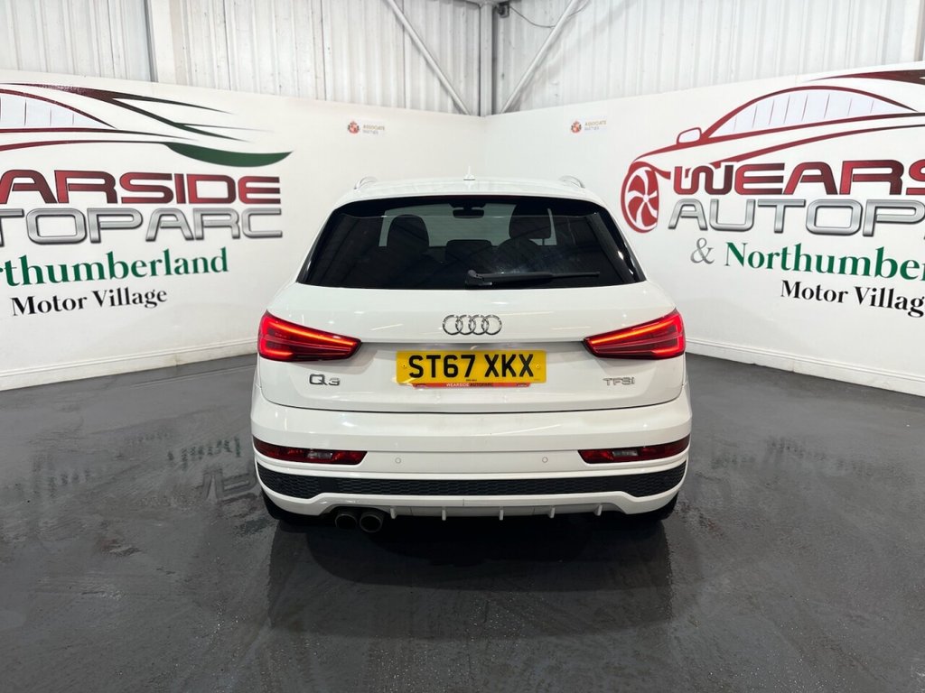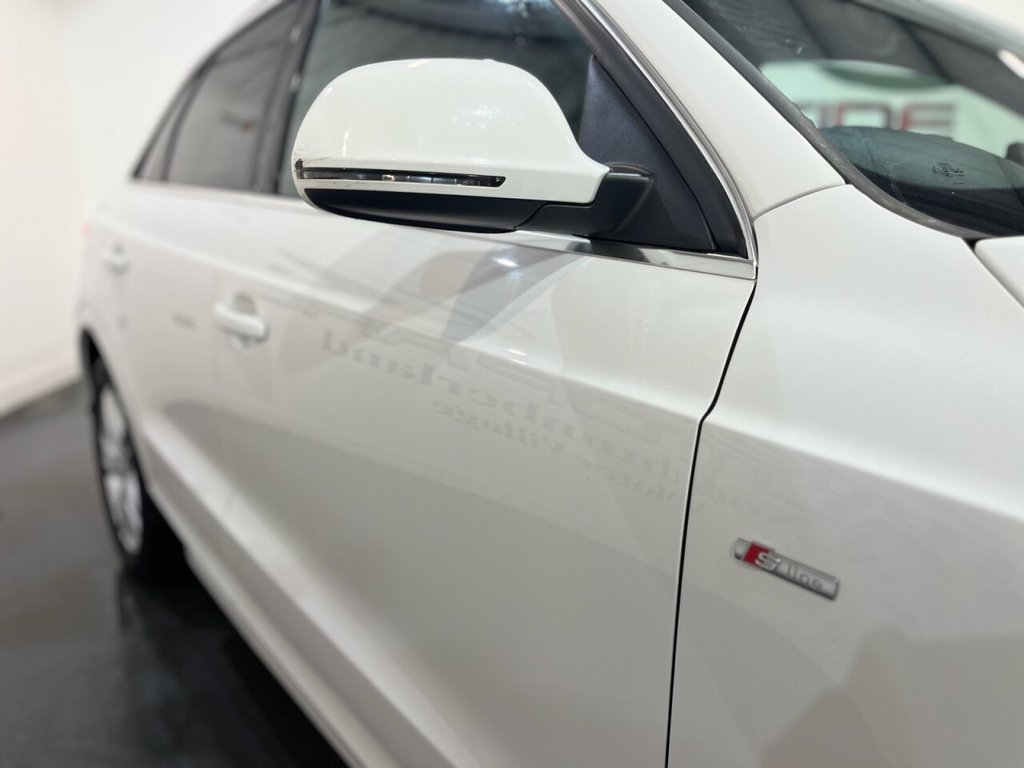 Audi Q3 1.4 TFSI CoD S line Edition SUV 5dr Petrol Manual Euro 6 (s/s) (150 PS). A well-maintained, two-owner example supplied with two keys and a comprehensive service history recorded at 20, 41, 56 and 64 thousand miles. This Q3 offers an excellent combination of style, performance and practicality, presented in the sought-after S line Edition trim. The specification includes alloy wheels, front and rear parking sensors, privacy glass, a half leather interior, electric power tailgate, climate control, heated folding mirrors, automatic headlights, cruise control, satellite navigation, DAB digital radio and Bluetooth connectivity. Powered by Audi's efficient 1.4 TFSI Cylinder-on-Demand petrol engine producing 150 PS, this Q3 delivers smooth and responsive performance while maintaining impressive fuel economy. A premium compact SUV offering comfort, technology and quality throughout.