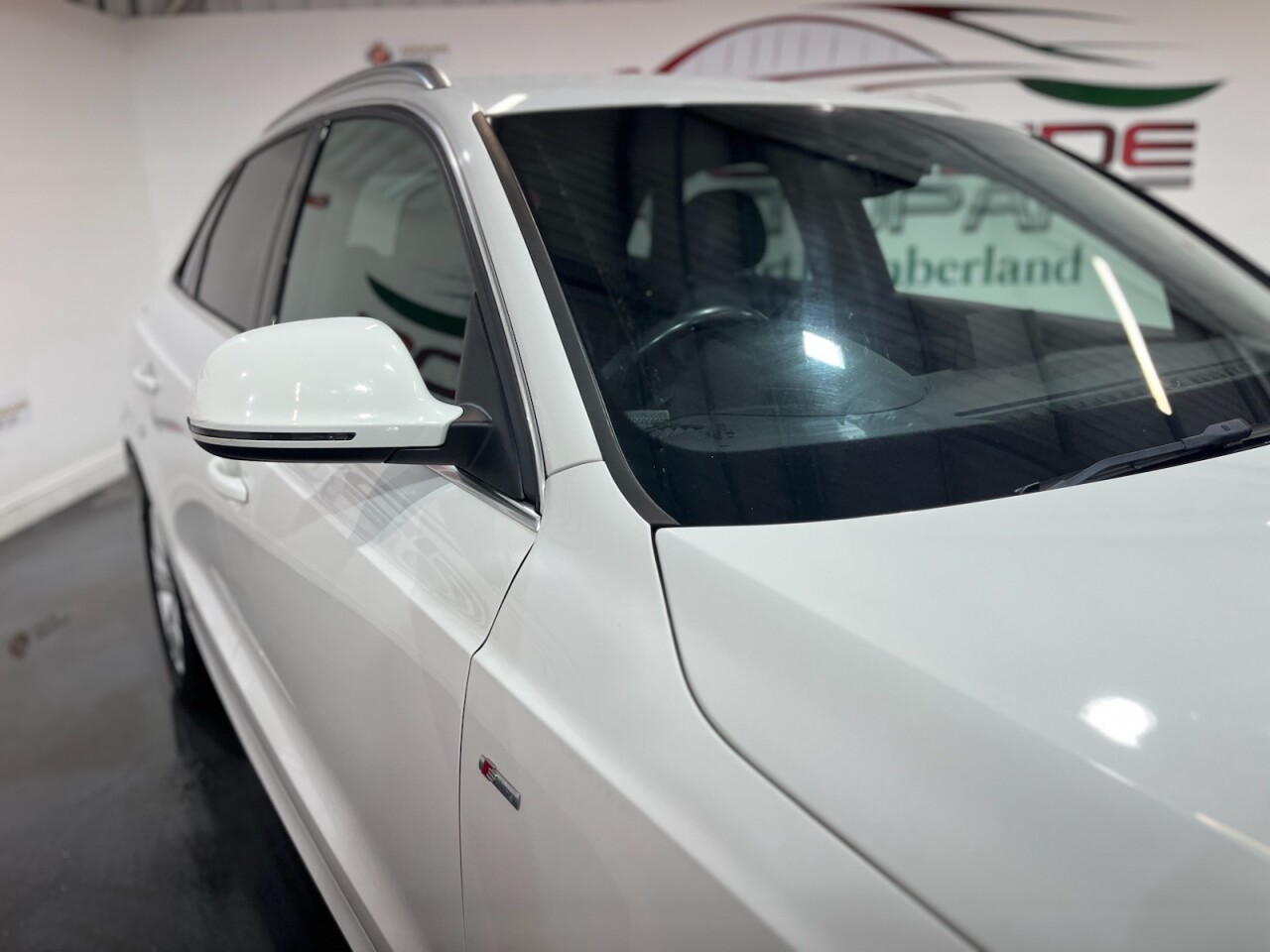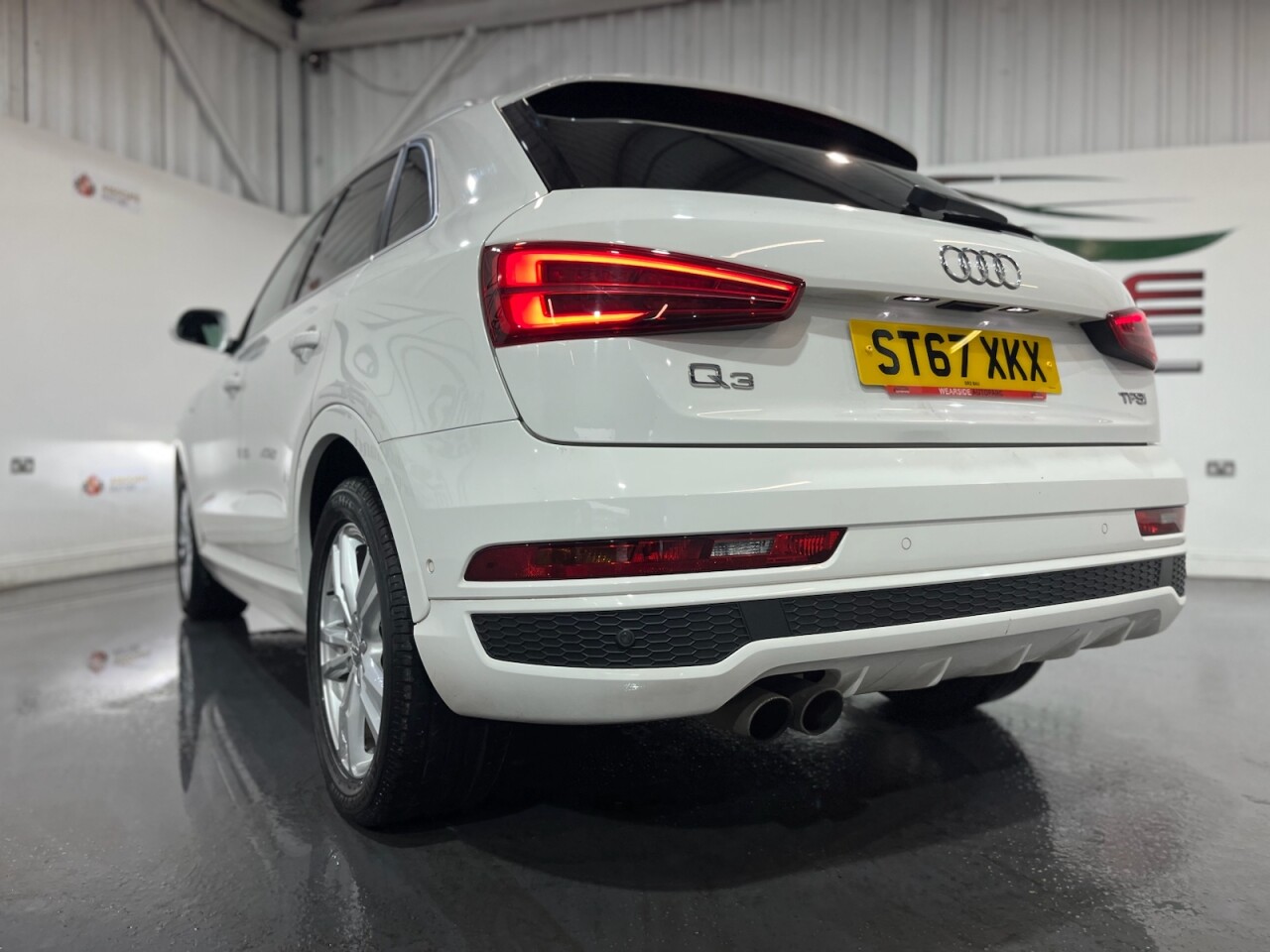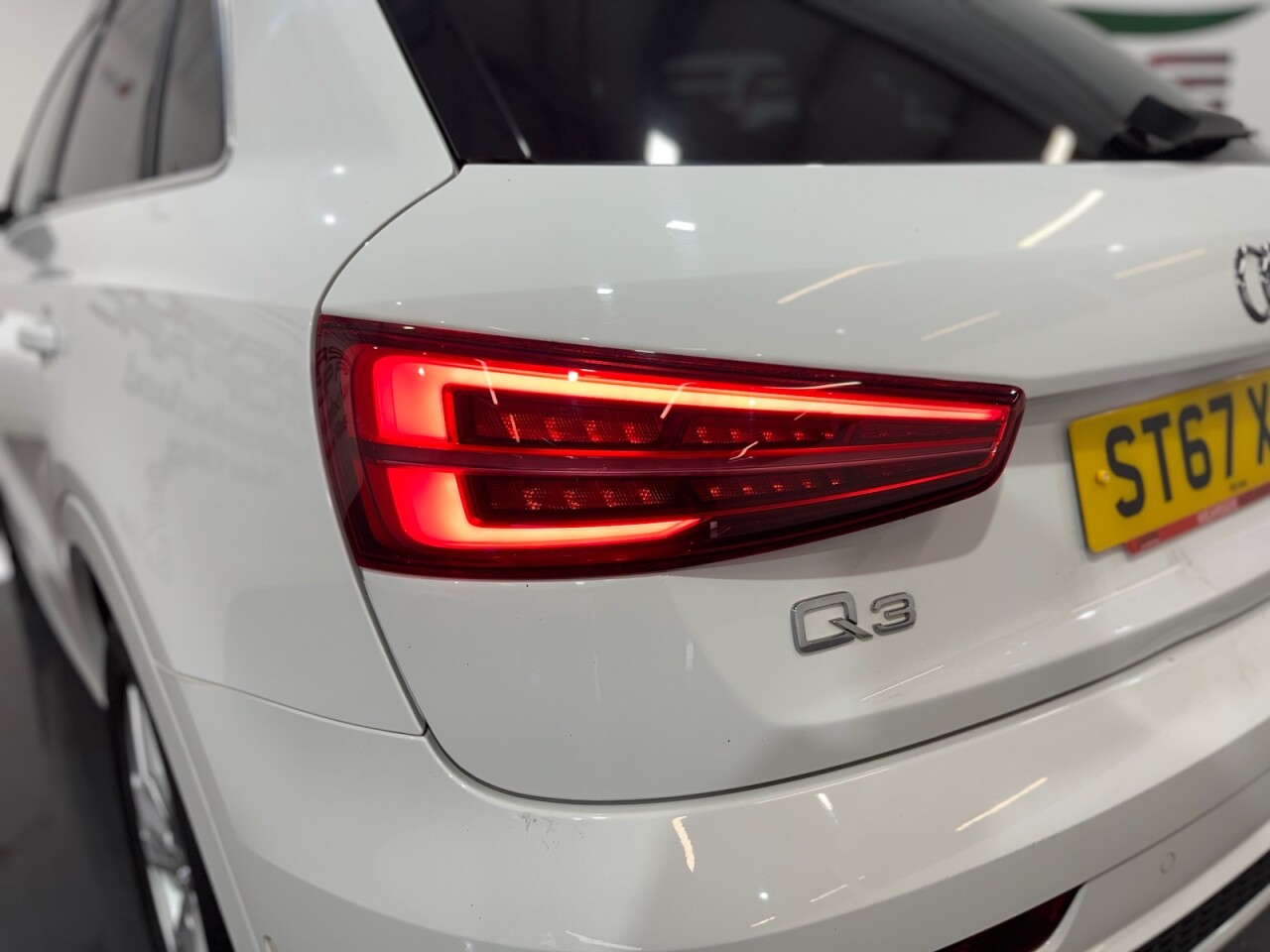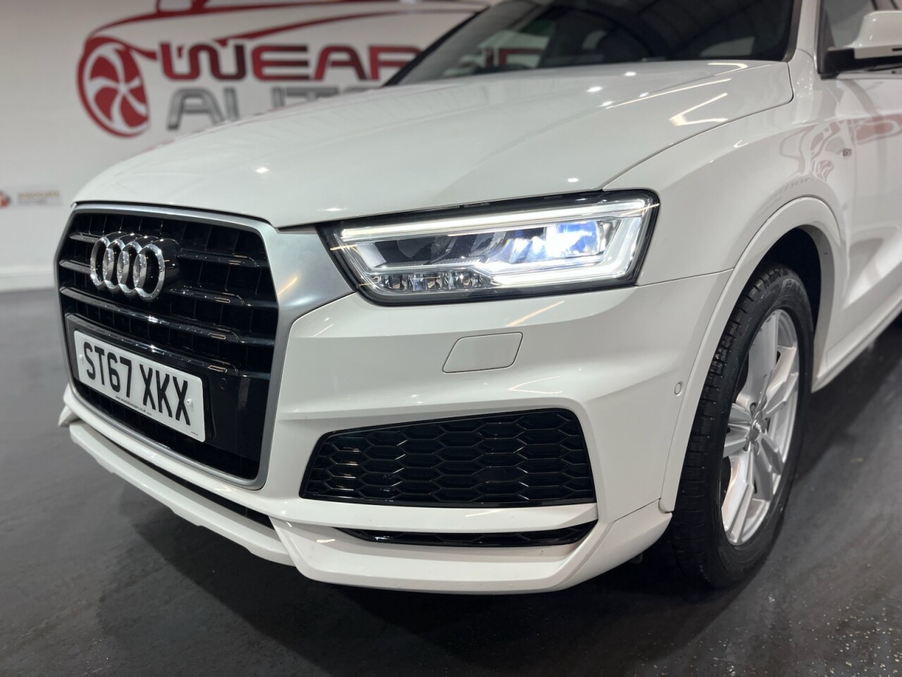 Audi Q3 1.4 TFSI CoD S line Edition SUV 5dr Petrol Manual Euro 6 (s/s) (150 PS). A well-maintained, two-owner example supplied with two keys and a comprehensive service history recorded at 20, 41, 56 and 64 thousand miles. This Q3 offers an excellent combination of style, performance and practicality, presented in the sought-after S line Edition trim. The specification includes alloy wheels, front and rear parking sensors, privacy glass, a half leather interior, electric power tailgate, climate control, heated folding mirrors, automatic headlights, cruise control, satellite navigation, DAB digital radio and Bluetooth connectivity. Powered by Audi's efficient 1.4 TFSI Cylinder-on-Demand petrol engine producing 150 PS, this Q3 delivers smooth and responsive performance while maintaining impressive fuel economy. A premium compact SUV offering comfort, technology and quality throughout.