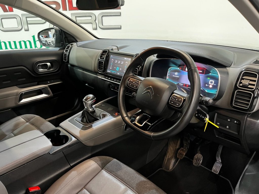 Citroën C5 Aircross 1.5 BlueHDi Flair SUV 5dr Diesel Manual Euro 6 (s/s) (130 PS). A one-owner example supplied with two keys and a service history recorded at 19, 39 and 58 thousand miles. This C5 Aircross Flair combines comfort, practicality and technology, offering a smooth and efficient drive. Specification includes alloy wheels, privacy glass, climate control, front and rear parking sensors, reverse and surround view cameras, folding door mirrors, digital dashboard, automatic headlights, half leather interior, Apple CarPlay, DAB digital radio, Bluetooth connectivity and satellite navigation. Powered by the economical 1.5 BlueHDi diesel engine producing 130 PS, paired with a manual gearbox, this model delivers excellent fuel efficiency alongside Citroën's trademark comfort and refinement.
