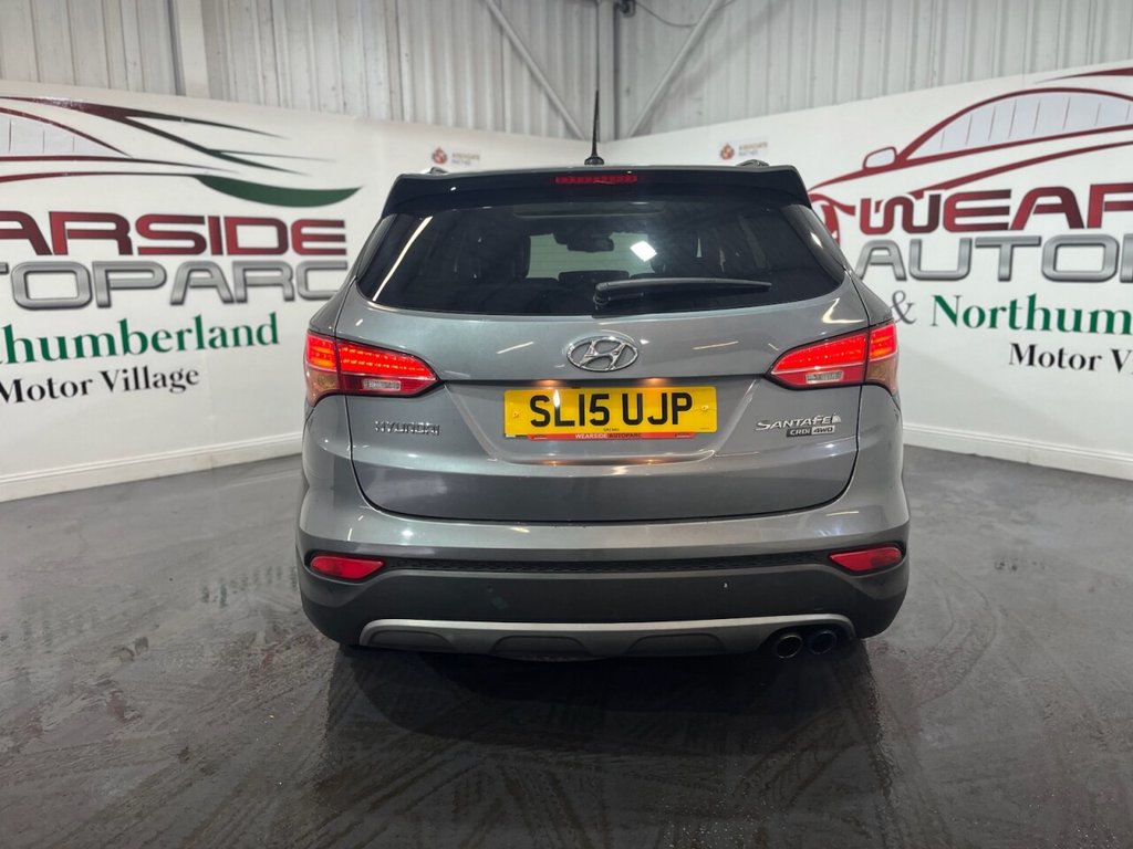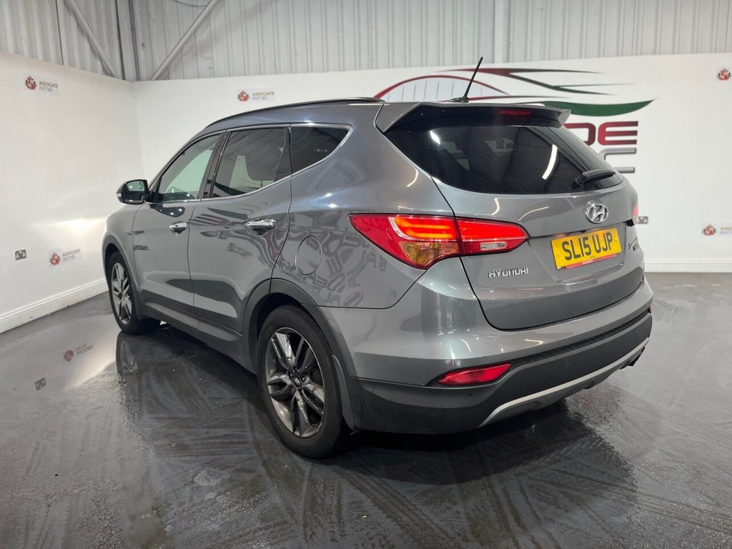Hyundai Santa Fe 2.2 CRDi Premium SE SUV 5dr Diesel Auto 4WD Euro 5 (7 Seat) (194 BHP). This spacious and versatile 7-seat SUV is supplied with two keys and comes with a full Hyundai Main Dealer service history, with services recorded at 11k, 21k, 35k, 55k, 65k, 78k, and 85k miles. Powered by a 2.2 CRDi diesel engine with automatic transmission and four-wheel drive, the Santa Fe delivers strong performance and capability, ideal for families or long-distance driving. High-spec Premium SE model includes alloy wheels, front and rear parking sensors, reverse camera, privacy glass, panoramic sunroof, electric power tailgate, folding mirrors, keyless start, cruise control, and climate control. Interior features include full leather, heated front and rear seats, memory front seats, sat nav, Bluetooth, and DAB radio. A well-maintained, high-spec 7-seater with excellent dealer history and premium features throughout.