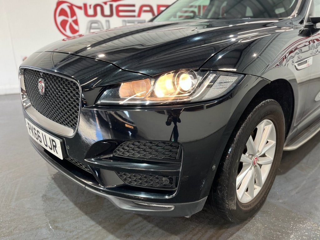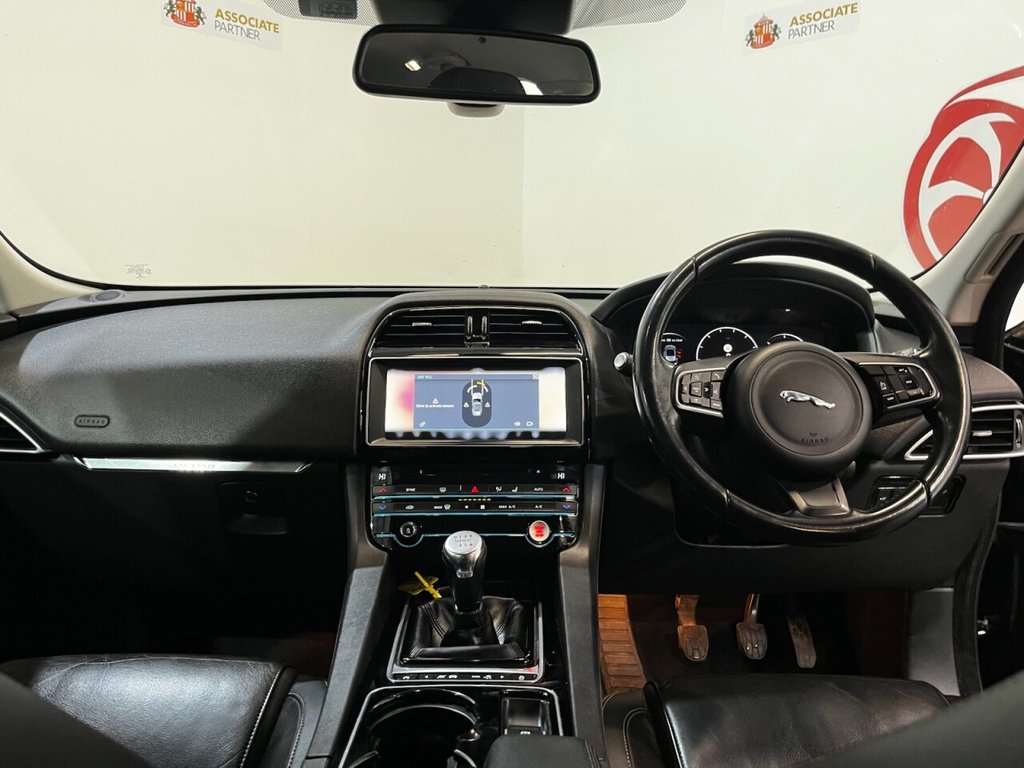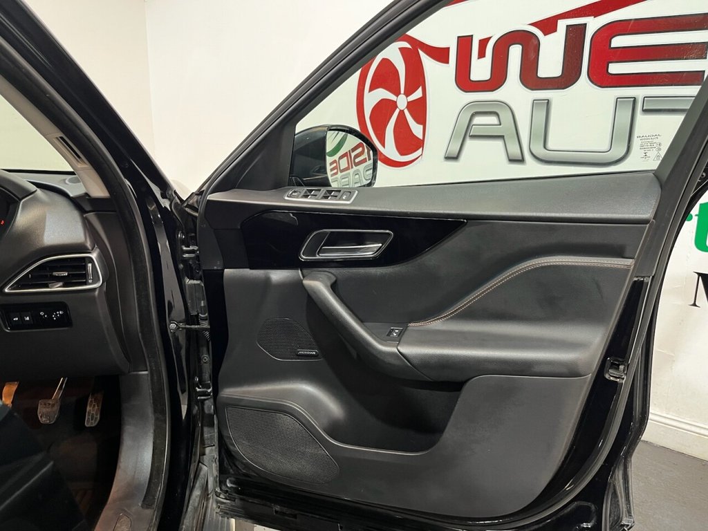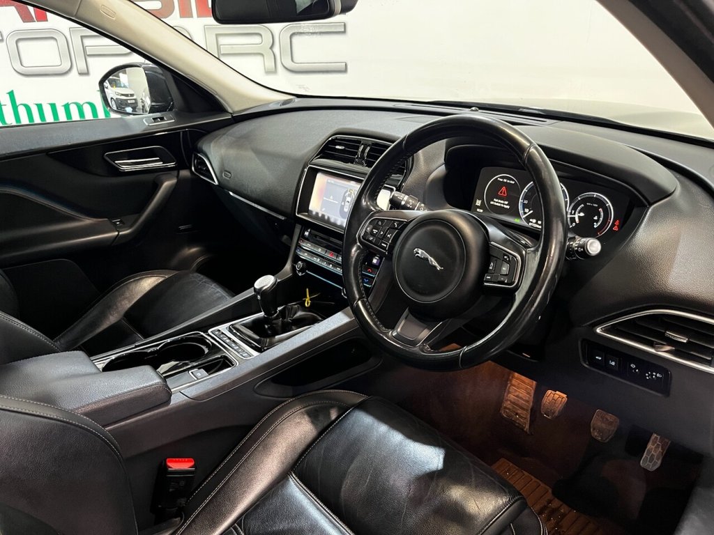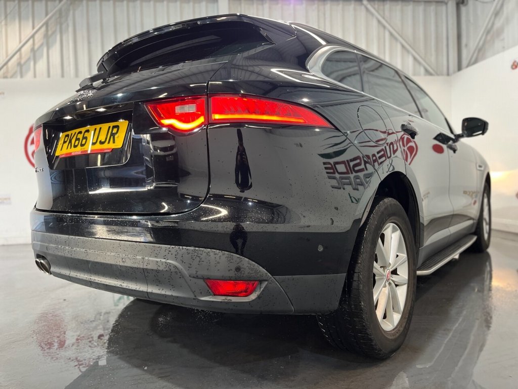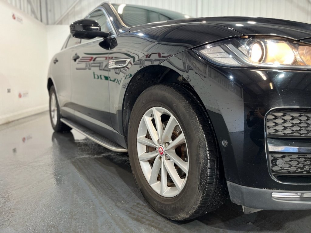 This Jaguar F-PACE 2.0 D180 Prestige SUV 5dr Diesel Manual Euro 6 (s/s) produces 180 ps and is supplied with a Jaguar main dealer service history recorded at 20,000 miles. Presented in excellent condition, this example combines luxury, practicality and performance with a strong specification that includes alloy wheels, privacy glass, side steps and an electric power tailgate. The interior features a Meridian sound system, electric heated front seats, rear heated seats, a digital dashboard and a CD player. Additional equipment includes climate control, cruise control, satellite navigation, automatic headlights and wipers, drive mode select, a reverse camera and DAB digital radio. A refined and capable SUV that delivers comfort, style and efficiency, fully compliant with Euro 6 emissions standards.