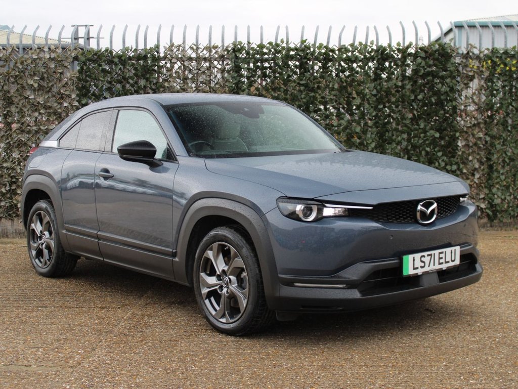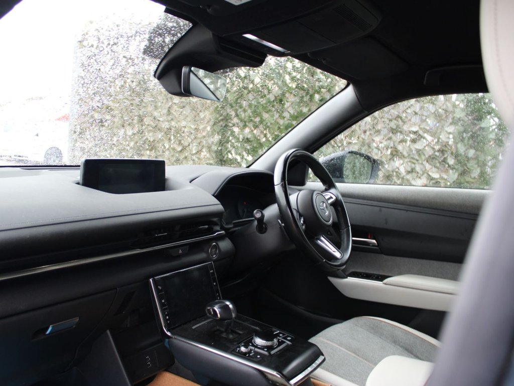 **92.0% BATTERY HEALTH** This 2021 Mazda MX-30 Sport Lux is a fantastic example, having been owned by only one person since new. This electric vehicle boasts a 36 kWh battery, offering a maximum range of 124 miles when fully charged. Recharging at home with a 7kW charger takes approximately 5 hours, while rapid public charging can take you from empty to 80% in just 48 minutes. The Sport Lux trim comes equipped with a range of desirable features designed to enhance your driving experience. You'll appreciate the convenience of Smart Keyless Entry, LED headlights for clear visibility, and Climate Control for perfect cabin temperature. Safety is also a priority, with Emergency Lane Keeping and Blind Spot Assist providing an extra layer of security. The innovative Window Projection Colour Active Driving Display with Traffic Sign Recognition offers a clear view of essential information without taking your eyes off the road.