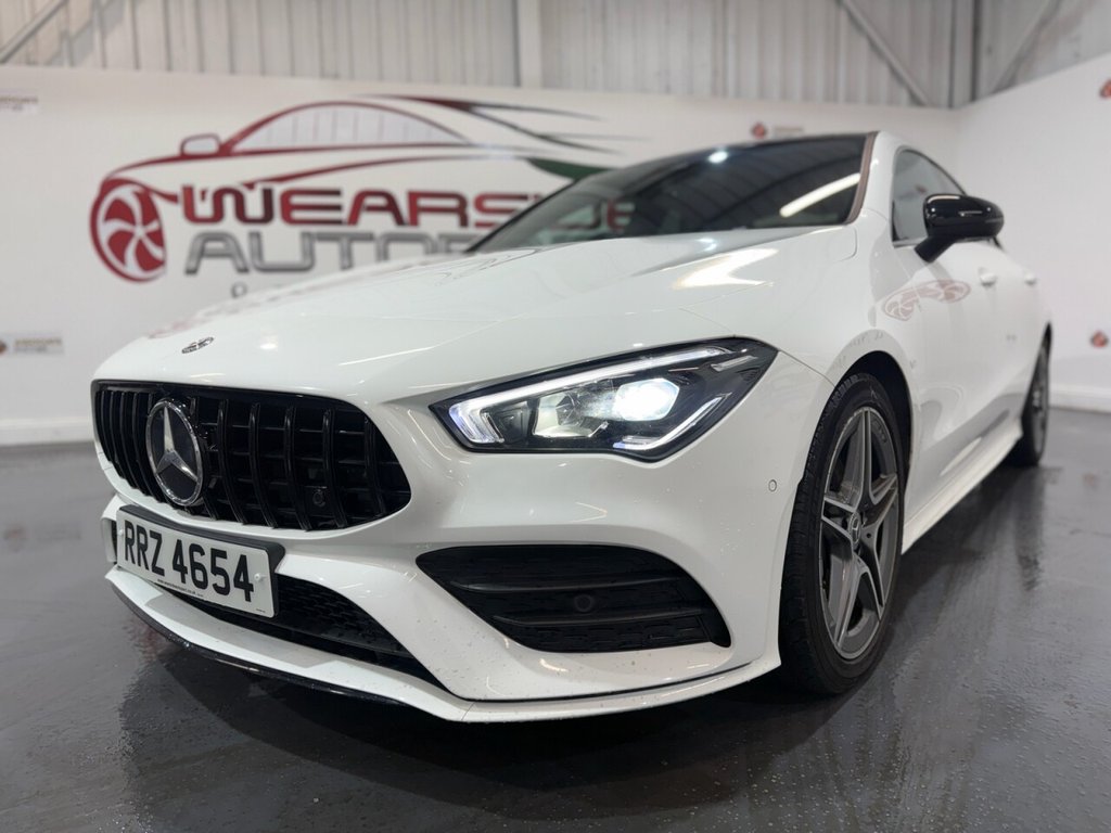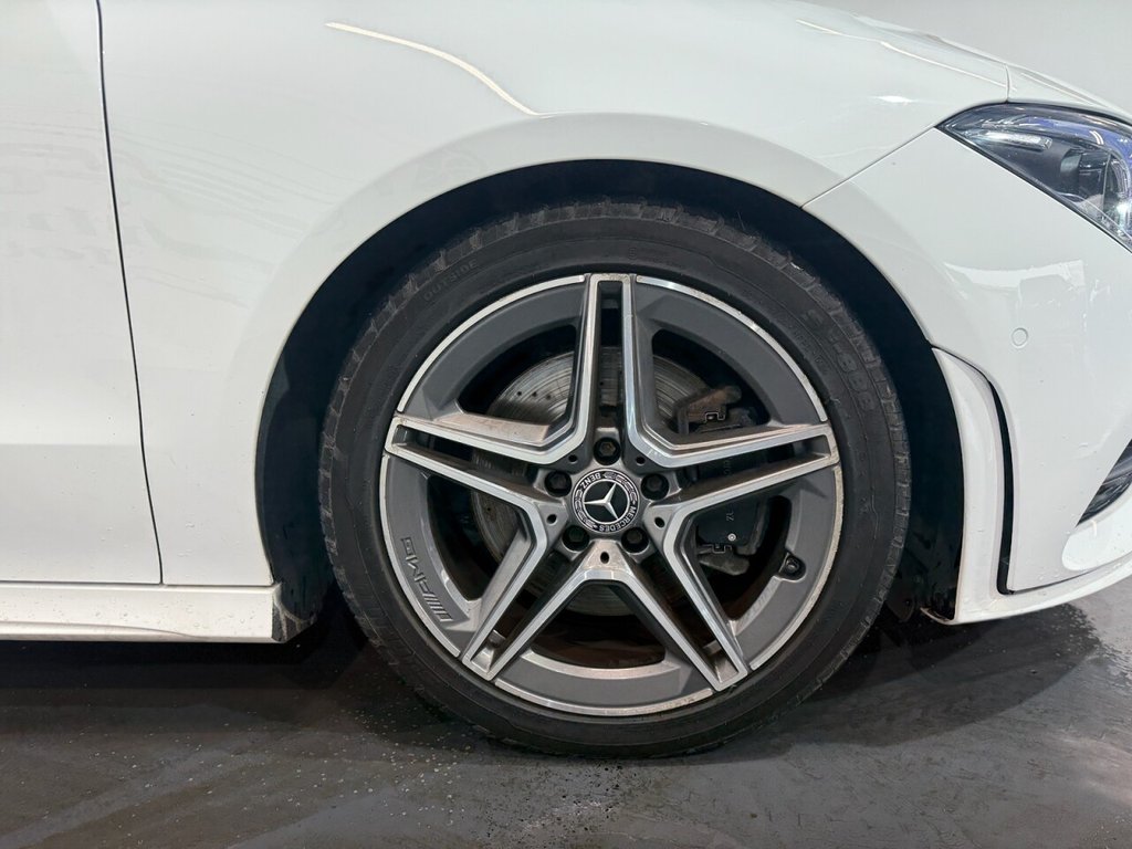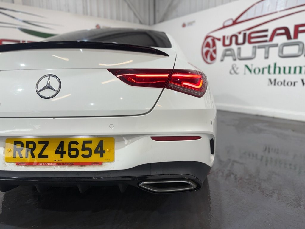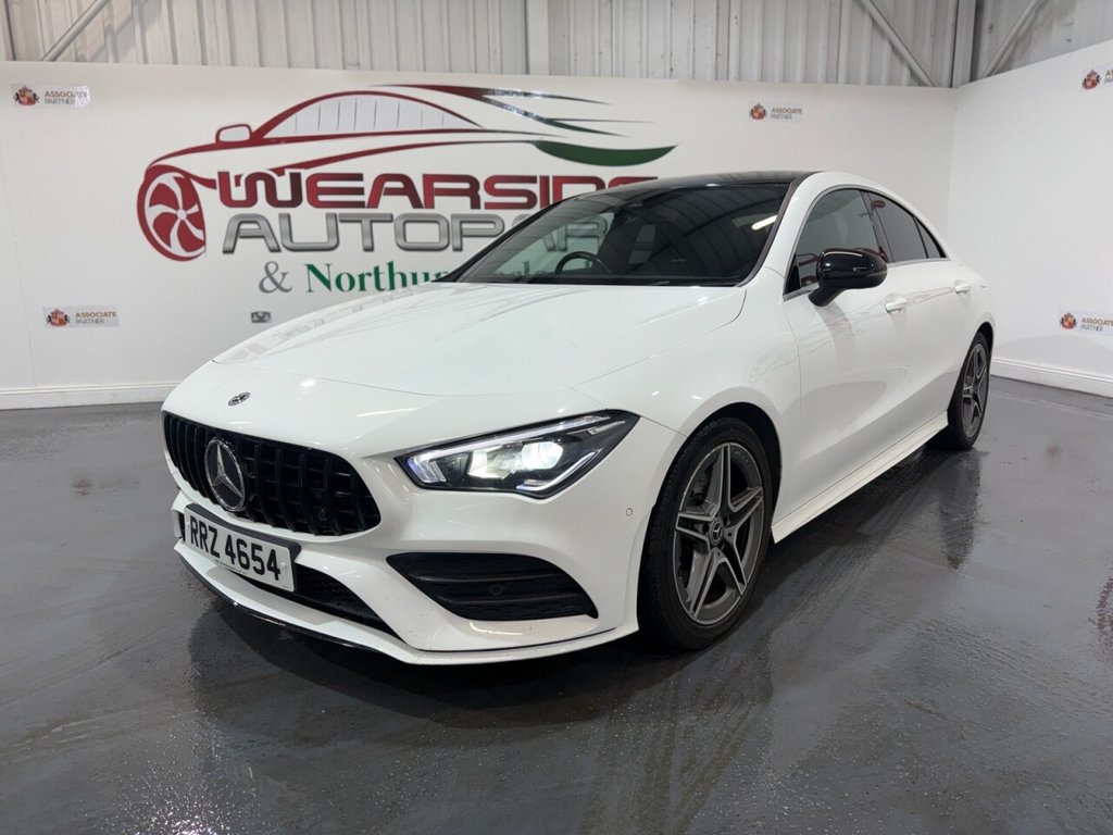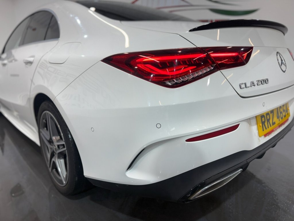 Mercedes-Benz CLA 1.3 CLA200 AMG Line Coupe 4dr Petrol 7G-DCT Euro 6 (s/s) (163 PS). A sleek and sporty coupe offering comfort, technology, and style. This CLA200 is equipped with a 1.3L petrol engine paired to a smooth 7G-DCT automatic gearbox, delivering 163 PS. Specification includes alloy wheels, front and rear parking sensors, folding door mirrors, reverse camera, automatic lights, digital dashboard, cruise control, climate control, keyless start, full leather interior, heated front seats, DAB radio, Bluetooth, sat nav, and privacy glass. A premium coupe with strong performance and high-spec refinement throughout.