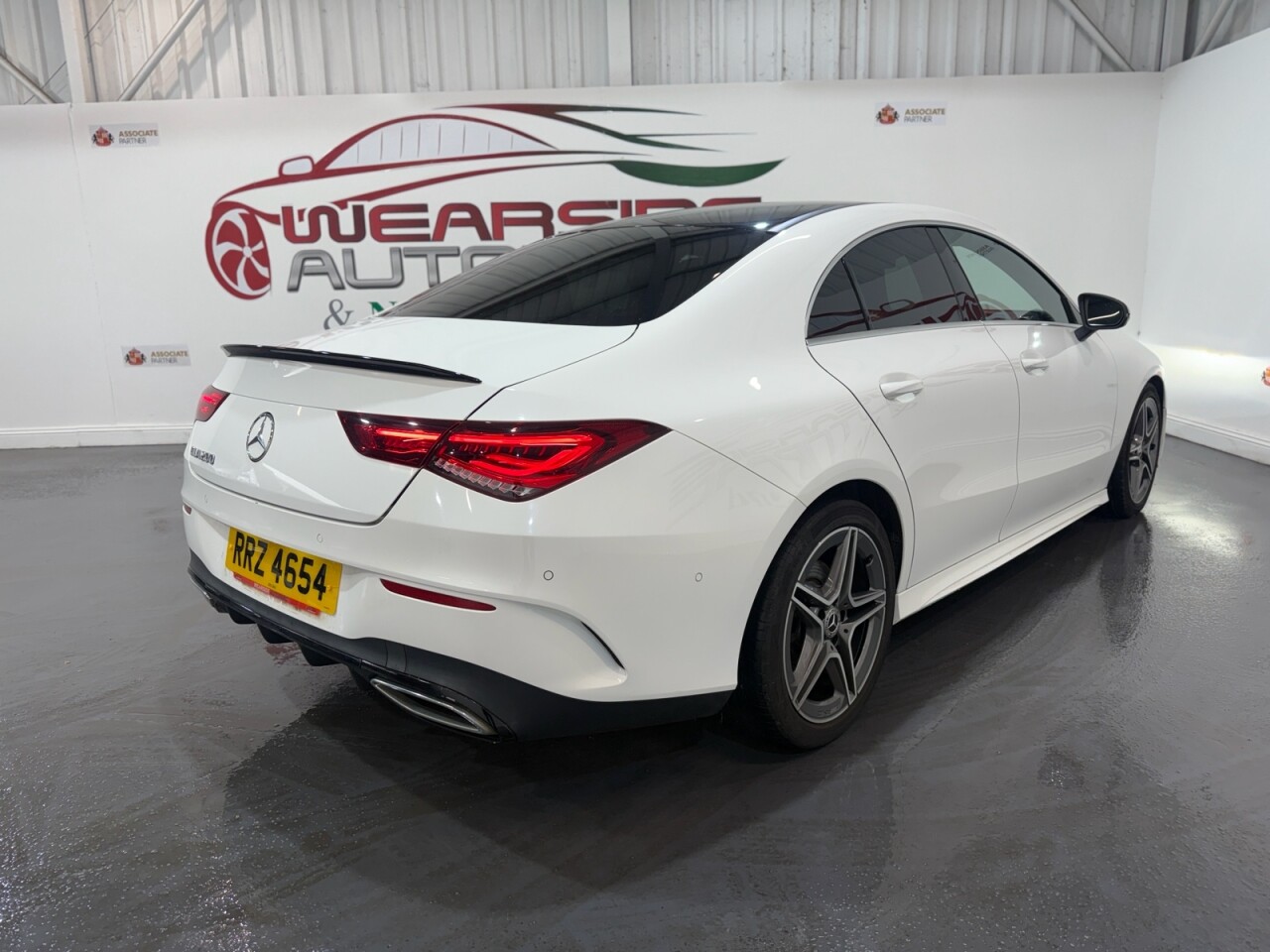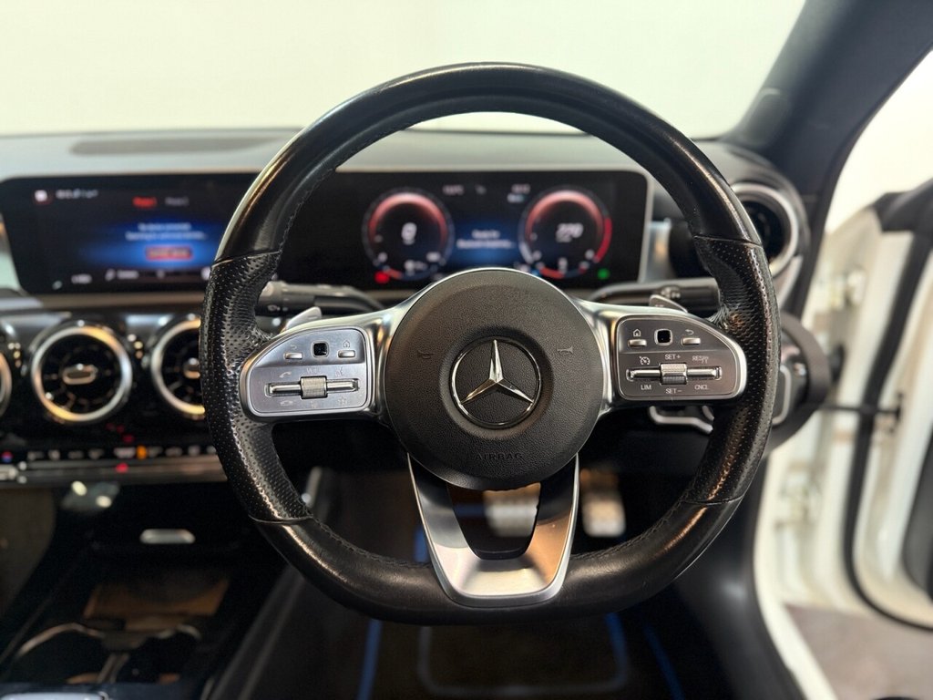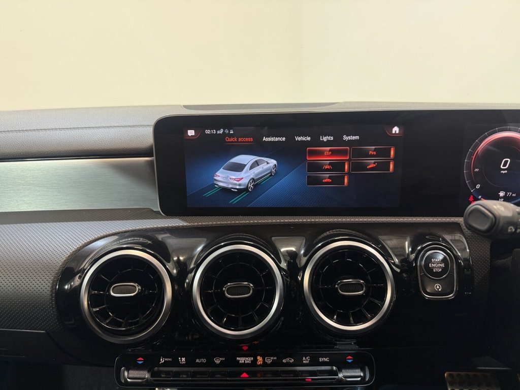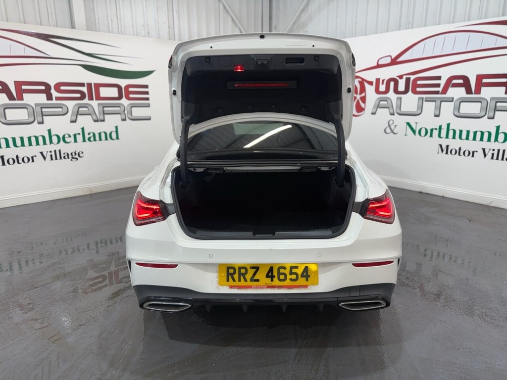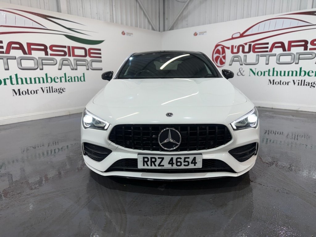 Mercedes-Benz CLA 1.3 CLA200 AMG Line Coupe 4dr Petrol 7G-DCT Euro 6 (s/s) (163 PS). A sleek and sporty coupe offering comfort, technology, and style. This CLA200 is equipped with a 1.3L petrol engine paired to a smooth 7G-DCT automatic gearbox, delivering 163 PS. Specification includes alloy wheels, front and rear parking sensors, folding door mirrors, reverse camera, automatic lights, digital dashboard, cruise control, climate control, keyless start, full leather interior, heated front seats, DAB radio, Bluetooth, sat nav, and privacy glass. A premium coupe with strong performance and high-spec refinement throughout.