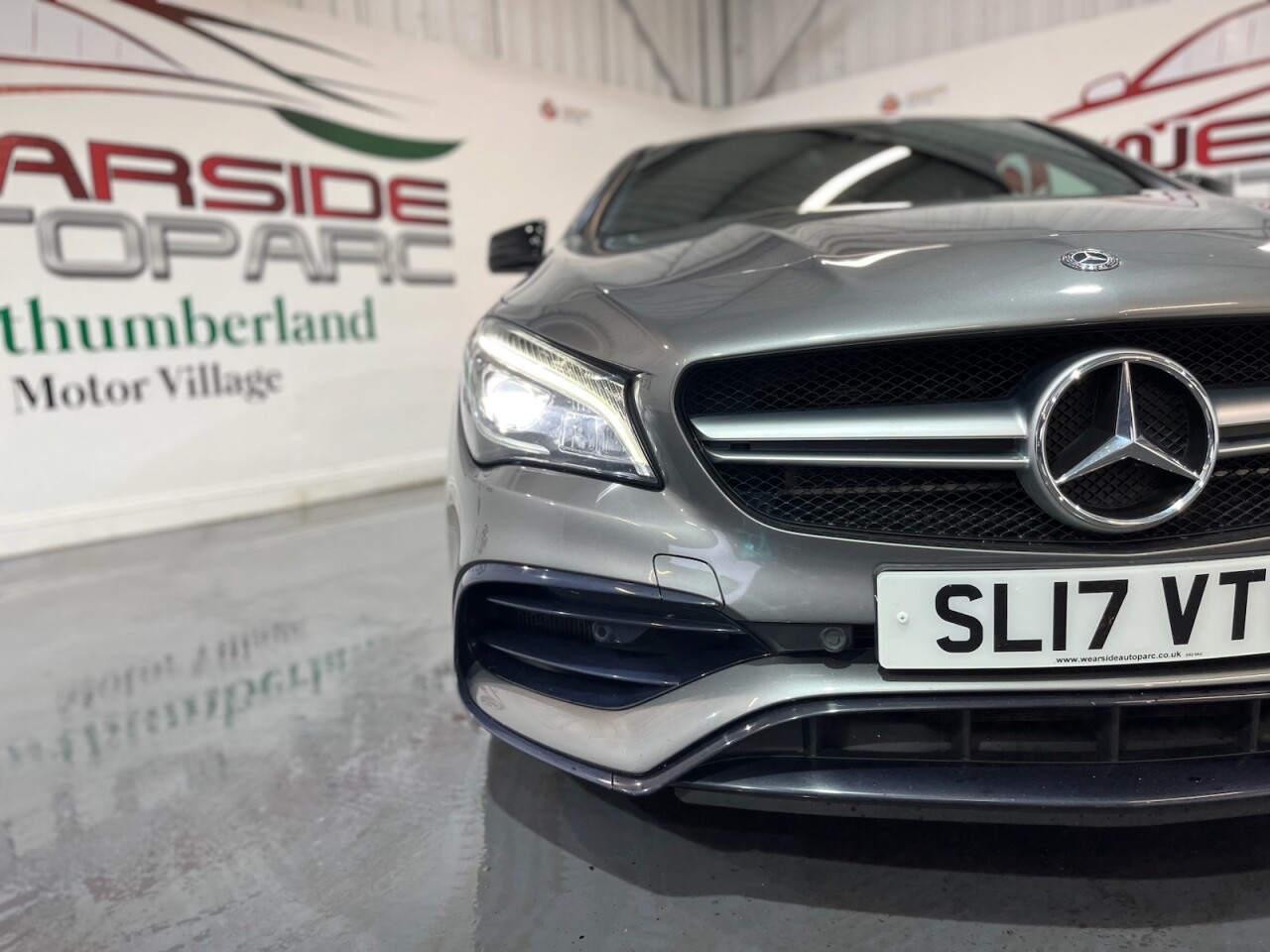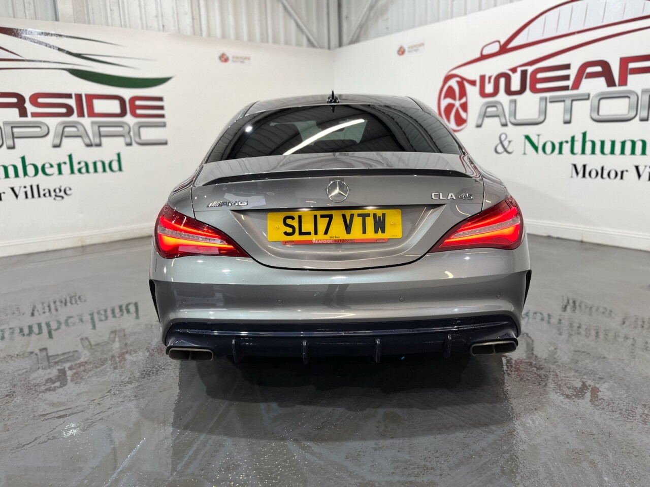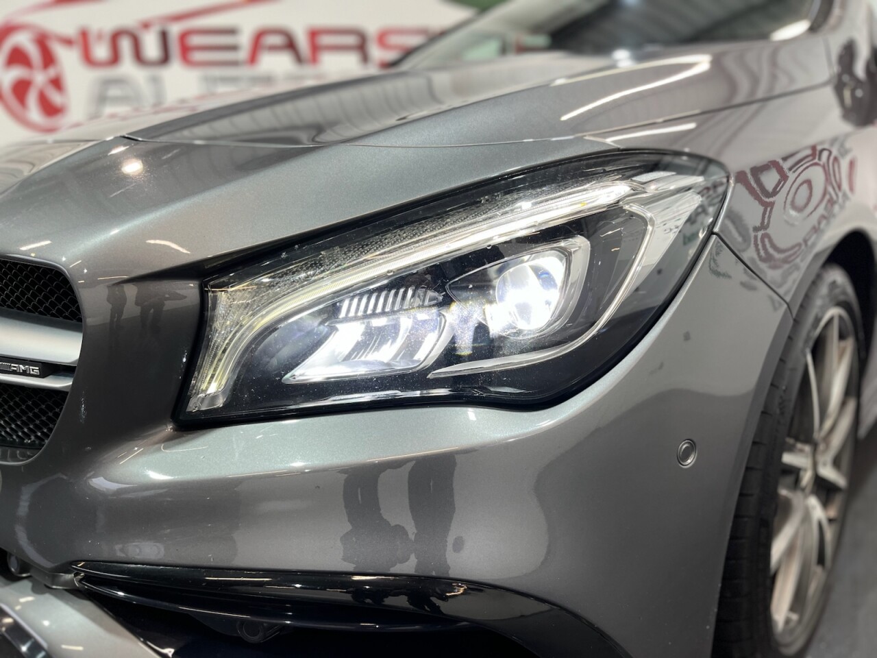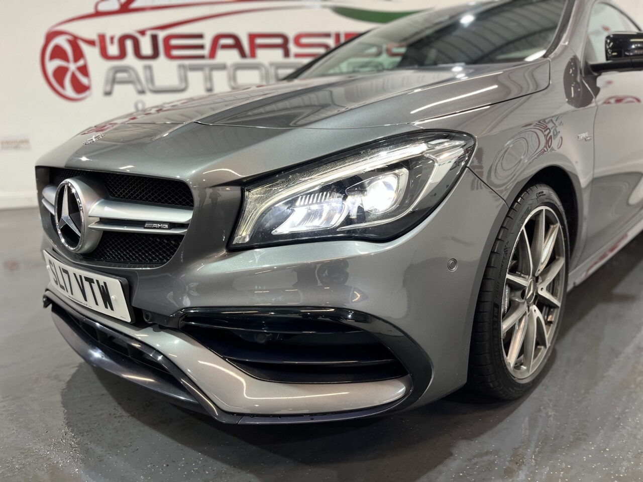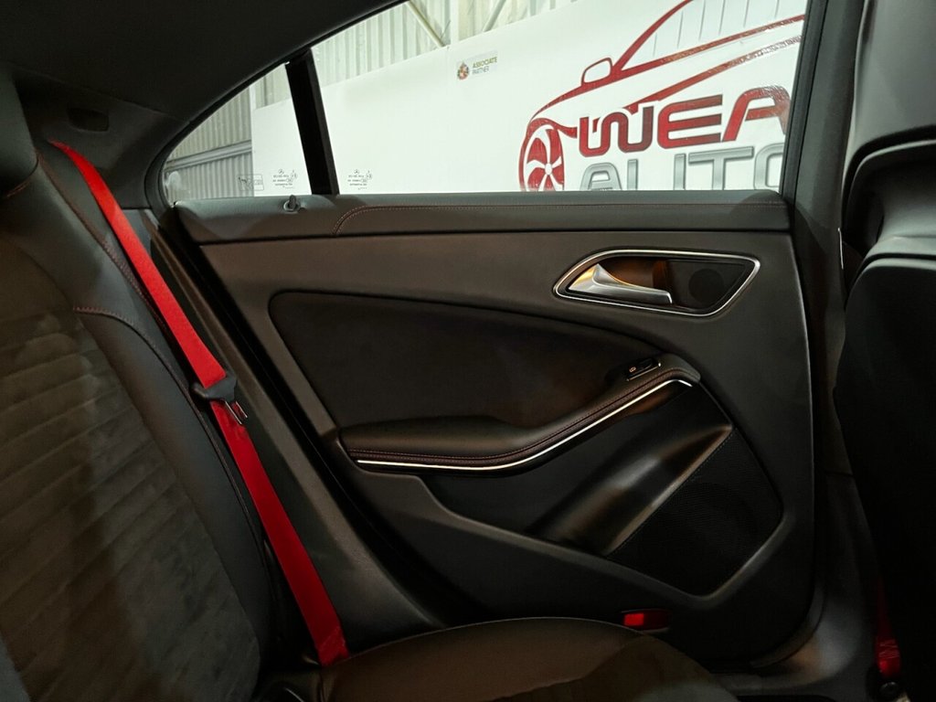 Mercedes-Benz CLA 2.0 CLA45 AMG Coupe 4dr Petrol SpdS DCT 4MATIC Euro 6 (s/s) (381 ps). A stunning example of the Mercedes-Benz CLA45 AMG Coupe, supplied with two keys and a full Mercedes-Benz main dealer service history, recorded at 4k, 8k, 12k, 18k, 28k, 37k, 43k and 51k miles. Powered by a 2.0-litre turbocharged petrol engine producing 381 ps, this car delivers exceptional performance through its 4MATIC all-wheel-drive system and smooth Speedshift DCT automatic gearbox. The high specification includes alloy wheels, climate control, cruise control, privacy glass, front and rear parking sensors, electric door mirrors, automatic headlights, DAB radio, satellite navigation, Bluetooth connectivity, half leather interior, heated front seats and sport seats. A well-maintained and exciting performance coupe offering style, comfort and true AMG driving dynamics.