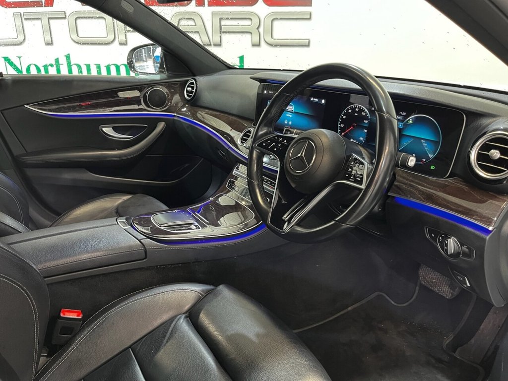 Mercedes-Benz E-Class 2.0 E220d Sport Saloon 4dr Diesel G-Tronic+ Euro 6 (s/s) (194 PS). This well-presented E220d Sport combines luxury, refinement and strong diesel efficiency, making it an ideal choice for both business and private use. This car comes with Mercedes Benz service history with services completed at 11,000, 33,000 and 62,000 miles The specification includes 17 inch alloy wheels, privacy glass, front and rear parking sensors, full leather interior, heated seats, cruise control, ambient lighting, satellite navigation, reverse camera, Bluetooth connectivity, DAB radio and Apple CarPlay. A stylish and comfortable saloon that delivers premium Mercedes-Benz quality with excellent practicality.