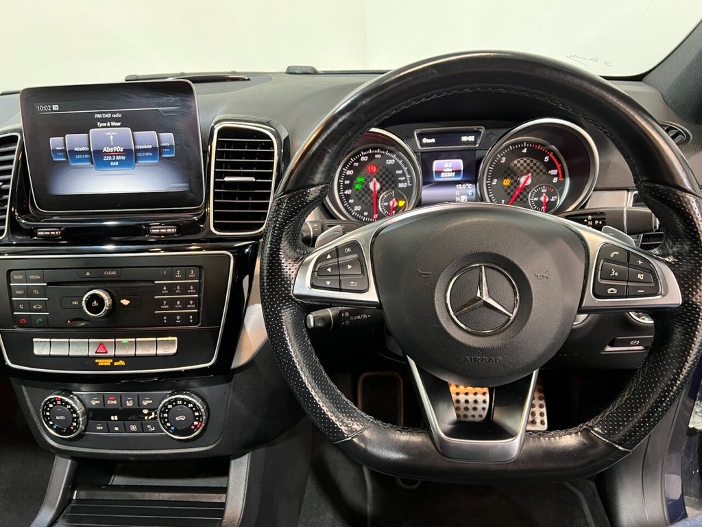 Mercedes-Benz GLE 3.0 GLE350d V6 AMG Night Edition (Premium Plus) SUV 5dr Diesel G-Tronic 4MATIC Euro 6 (s/s) (258ps). Supplied with two keys and a service history recorded at 6,000, 13,000, 18,000 and 38,000 miles. This GLE350d AMG Night Edition Premium Plus offers luxury, performance and practicality, powered by the refined 3.0 V6 diesel engine producing 258ps and paired with the G-Tronic automatic gearbox and 4MATIC all-wheel drive system. The high specification includes alloy wheels, DAB radio, privacy glass, reverse and surround view cameras, electric power tailgate, front and rear parking sensors, climate control, Harman Kardon sound system, automatic headlights, power-folding door mirrors, memory front seat, full leather interior, heated front seats, cruise control, electric steering column, panoramic sunroof, satellite navigation and Bluetooth connectivity. A superb high-specification example combining comfort, technology and refined V6 performance.