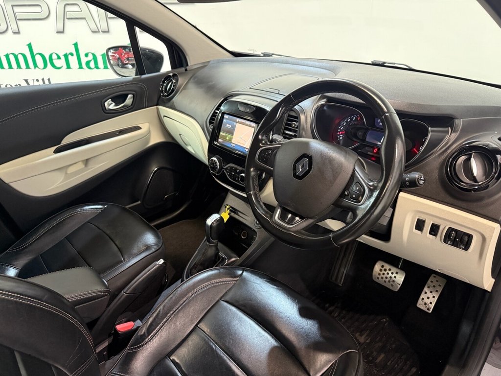 Renault Captur 1.2 TCe ENERGY Signature S Nav SUV 5dr Petrol EDC Euro 6 (s/s) (120 PS). Two-owner car, supplied with two keys and a full service history, with services recorded at 9k, 19k, 23k, 30k, 38k, 44k, and 54k miles. Powered by a 1.2-litre turbocharged petrol engine with EDC automatic transmission, this Captur offers a smooth, efficient drive with a high level of comfort and equipment. Specification includes alloy wheels, front and rear parking sensors, folding door mirrors, automatic lights, climate control, full leather interior, sat nav, Bluetooth, reverse camera, BOSE premium sound system, and keyless entry and start. A stylish, well-maintained compact SUV with a premium spec and great history.