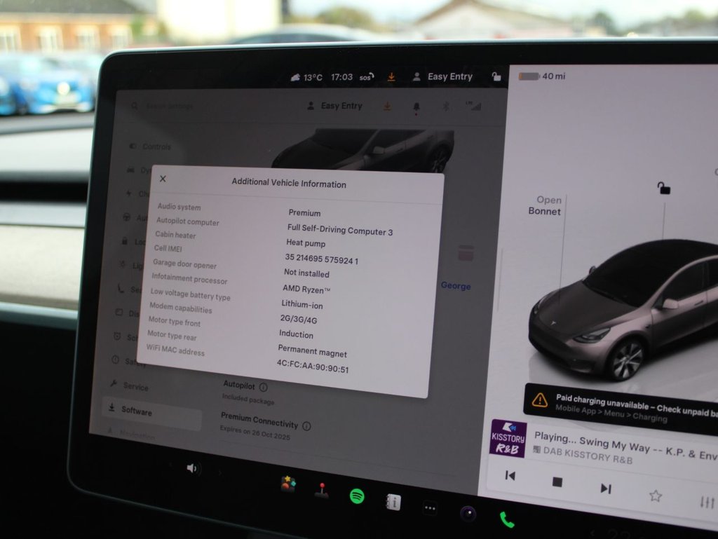 **91.6% BATTERY HEALTH** This 2022 Tesla Model Y Long Range is a superb example, having had only one owner since new. As an electric vehicle with Four Wheel Drive, it offers an impressive battery total capacity of 85 kWh, providing a maximum range of 331 miles when new. This Model Y benefits from a suite of notable features, including music and media playback via Bluetooth, heated rear seats for passenger comfort, and a heated steering wheel for those colder journeys. Its LED headlights ensure excellent visibility, while keyless driving and entry add to its modern convenience. The Long Range variant of the Model Y truly stands out. Its acceleration is a key highlight, achieving 0-60mph in just 4.8 seconds, demonstrating its dynamic performance. Furthermore, the substantial boot space offers practicality for everyday use and longer trips. When it comes to charging, you can achieve a full charge at home using a 7kW charger in approximately 12 hours, or benefit from rapid charging on the go, reaching 80% from empty in as little as 25 minutes at a public charging station. These capabilities, combined with its impressive range, position this Model Y as an exceptional choice in its class.