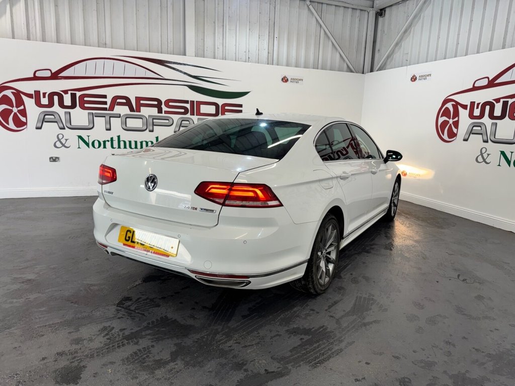 VOLKSWAGEN PASSAT 2.0 TDI BlueMotion Tech R-Line Saloon 4dr Diesel DSG Euro 6 (s/s) (190 ps). A stylish and refined saloon offering strong performance, comfort and impressive efficiency. This R-Line edition is powered by the punchy 2.0-litre TDI engine producing 190 ps, paired with a smooth DSG automatic gearbox and compliant with Euro 6 emissions standards. A two-owner car, it is supplied with service history recorded at 23, 43 and 58 thousand miles, and includes two keys. The well-equipped specification features sleek alloy wheels, privacy glass and front and rear parking sensors. Additional highlights include electric heated folding door mirrors, automatic lights, keyless start, cruise control and dual-zone climate control for added convenience. The infotainment system offers DAB radio, satellite navigation and Bluetooth connectivity, making this Passat an excellent choice for those seeking comfort, space, and executive-level specification in a saloon.