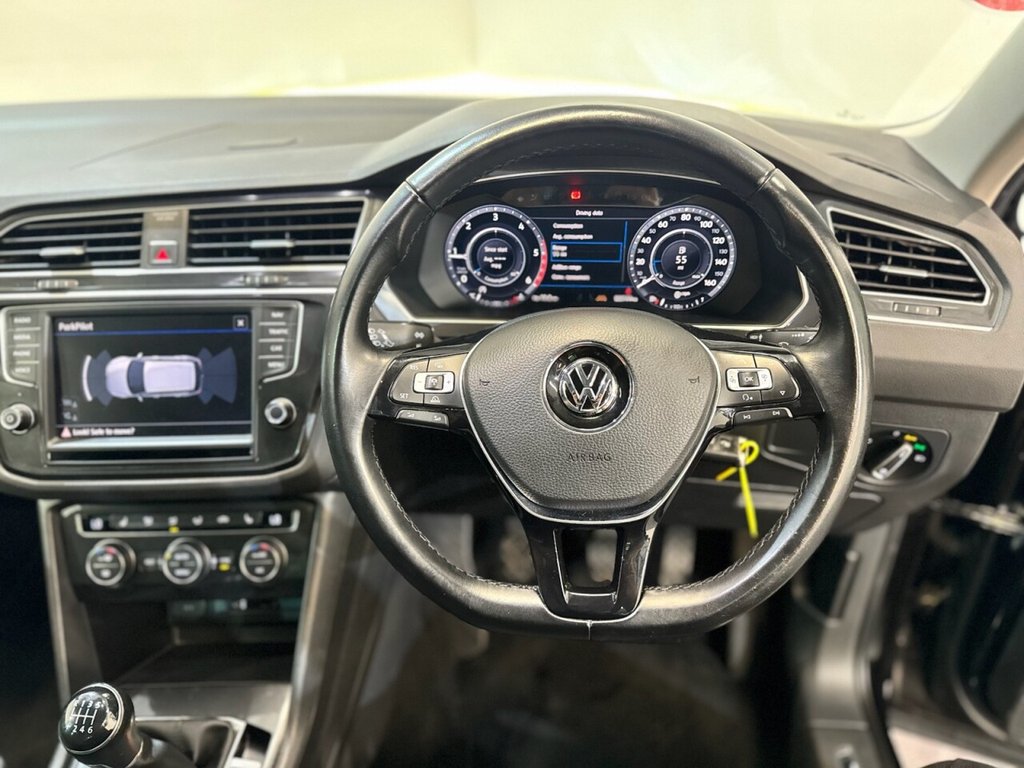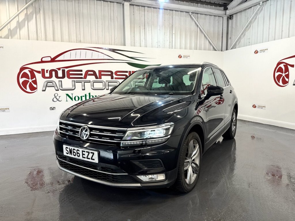 VOLKSWAGEN Tiguan 2.0 TDI BlueMotion Tech SEL SUV 5dr Manual 4Motion (150 PS) Diesel Euro 6 (s/s) is a two-owner vehicle, supplied with two keys and a full Volkswagen Main Dealer service history, with maintenance recorded at 3,000, 6,000, 7,000, 9,000, 12,000, 15,000, 17,000, 27,000, 36,000 and 54,000 miles. This well-maintained all-wheel-drive SUV offers a strong blend of performance, comfort and practicality. Finished in SEL trim, the car features alloy wheels, privacy glass, a panoramic sunroof, four electric windows, front and rear parking sensors, automatic headlights, a driver's massage seat, electric heated folding door mirrors, dual-zone climate control, a digital dashboard, DAB radio, Bluetooth, satellite navigation and heated front seats. A high-spec, dealer-maintained example offering refined driving and year-round capability.