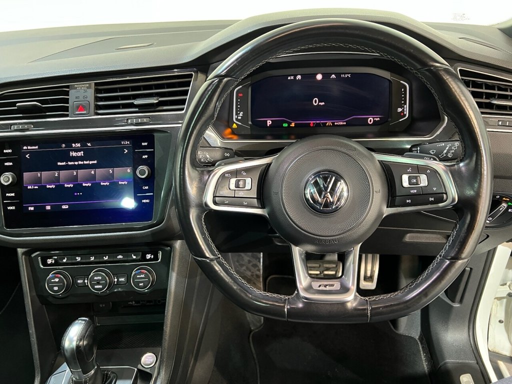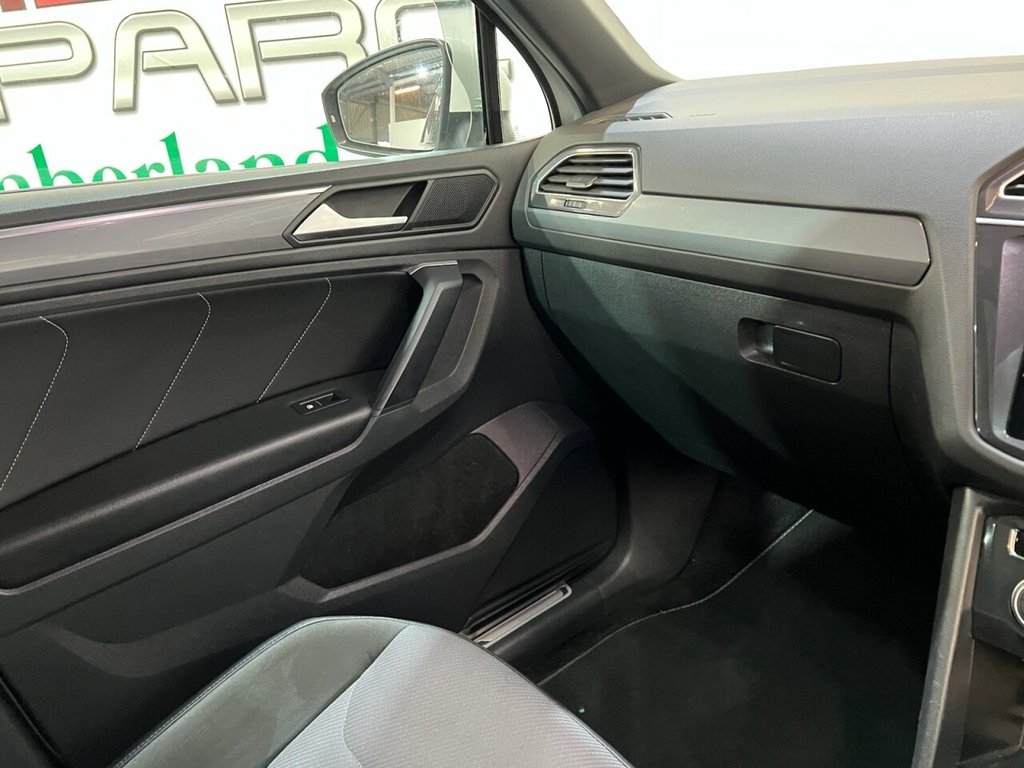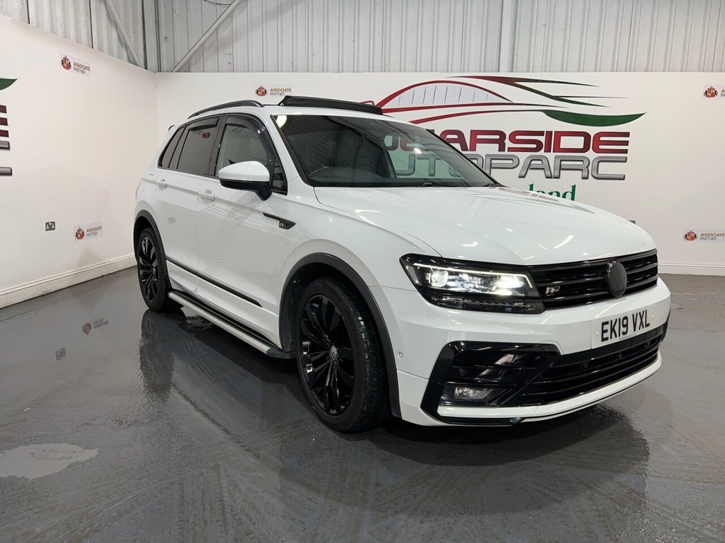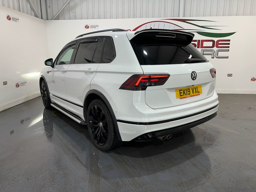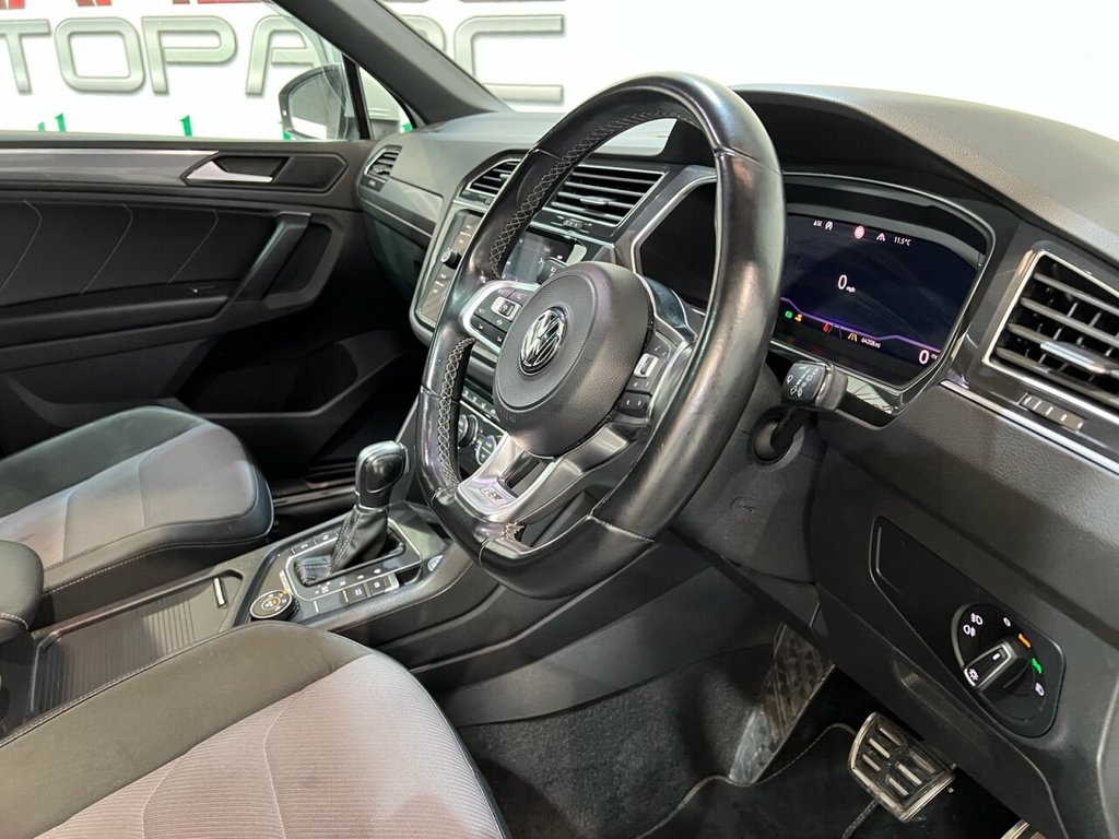 Volkswagen Tiguan 2.0 TDI R-Line Tech SUV 5dr Diesel DSG 4Motion Euro 6 (s/s) (150ps). Supplied with two keys. This stylish and capable Tiguan R-Line Tech combines performance, comfort and technology, powered by the 2.0 TDI diesel engine producing 150ps and paired with the smooth DSG automatic gearbox and 4Motion all-wheel drive system. The high specification includes alloy wheels, privacy glass, electric power tailgate, front and rear parking sensors, reverse and surround view cameras, satellite navigation, Bluetooth connectivity, Apple CarPlay, side steps, heated power-folding door mirrors, automatic headlights, digital dashboard, cruise control, half leather interior, heated front seats, climate control, keyless start and a panoramic sunroof. A superb high-specification example offering luxury, practicality and refined performance throughout.